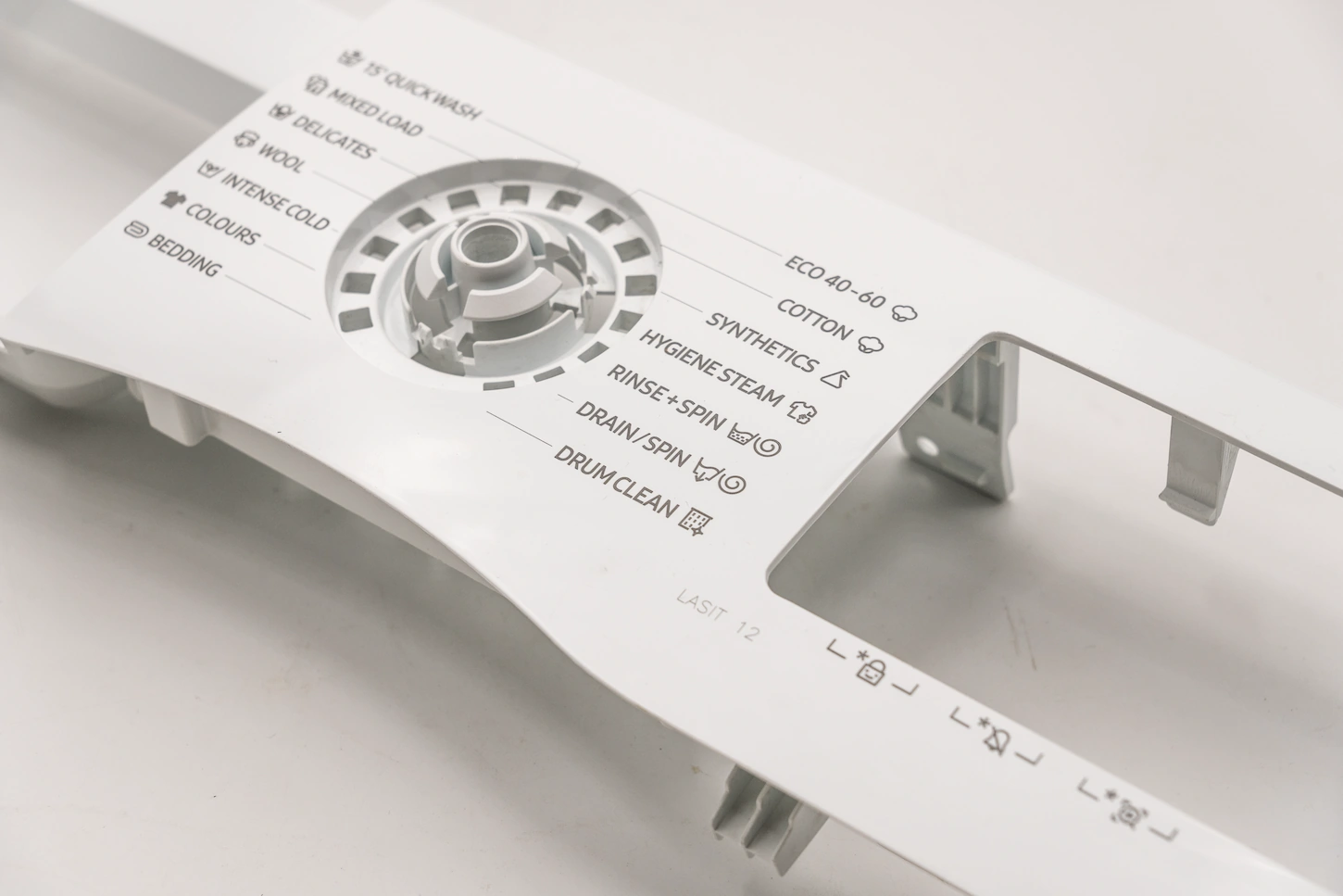 Un aspect crucial du marquage des composants d’appareils électroménagers (tiroirs de réfrigérateurs, façades de lave-linge et lave-vaisselle, par exemple) est la gestion des géométries complexes. Les composants en plastique ont souvent des formes irrégulières et des surfaces incurvées qui nécessitent des solutions avancées. LASIT a mis en place des systèmes avec des têtes de marquage 3D qui maintiennent la perpendicularité du faisceau à la surface, compensant automatiquement les variations de hauteur et garantissant l’uniformité du marquage sur toute la surface. Cette technologie permet d’optimiser les temps de cycle grâce à des mouvements fluides et coordonnés, un aspect essentiel pour l’intégration dans des lignes de production hautement efficaces.