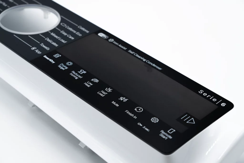 Dans le secteur de l’électroménager, la transition vers les interfaces numériques, les écrans tactiles et les finitions haut de gamme a radicalement changé les exigences en matière de marquage et de personnalisation des composants. Des éléments tels que les écrans tactiles capacitifs, les surfaces IMD (In-Mold Decoration), les panneaux de commande en ABS peint et les couvercles en PMMA nécessitent désormais des processus de gravure qui respectent l’intégrité esthétique, la lisibilité des symboles et la durabilité sans compromettre la fonctionnalité électronique ou structurelle. Le principal défi technique consiste à marquer des surfaces tridimensionnelles complexes avec des géométries courbes, des reliefs et des textures, tout en maintenant l’uniformité de la profondeur, la netteté des caractères et l’absence de dommages aux couches fonctionnelles sous-jacentes.